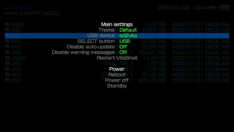 此时,按Start键,将USB device从Memory Card改成sd2vita。