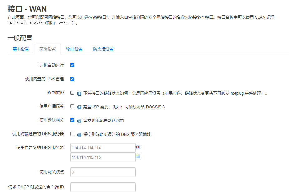 一般来说,这里会自动获取运营商的dns服务器,由于运营商的服务器一般都有各种各样的问题,因此可以设置为114公共服务器。