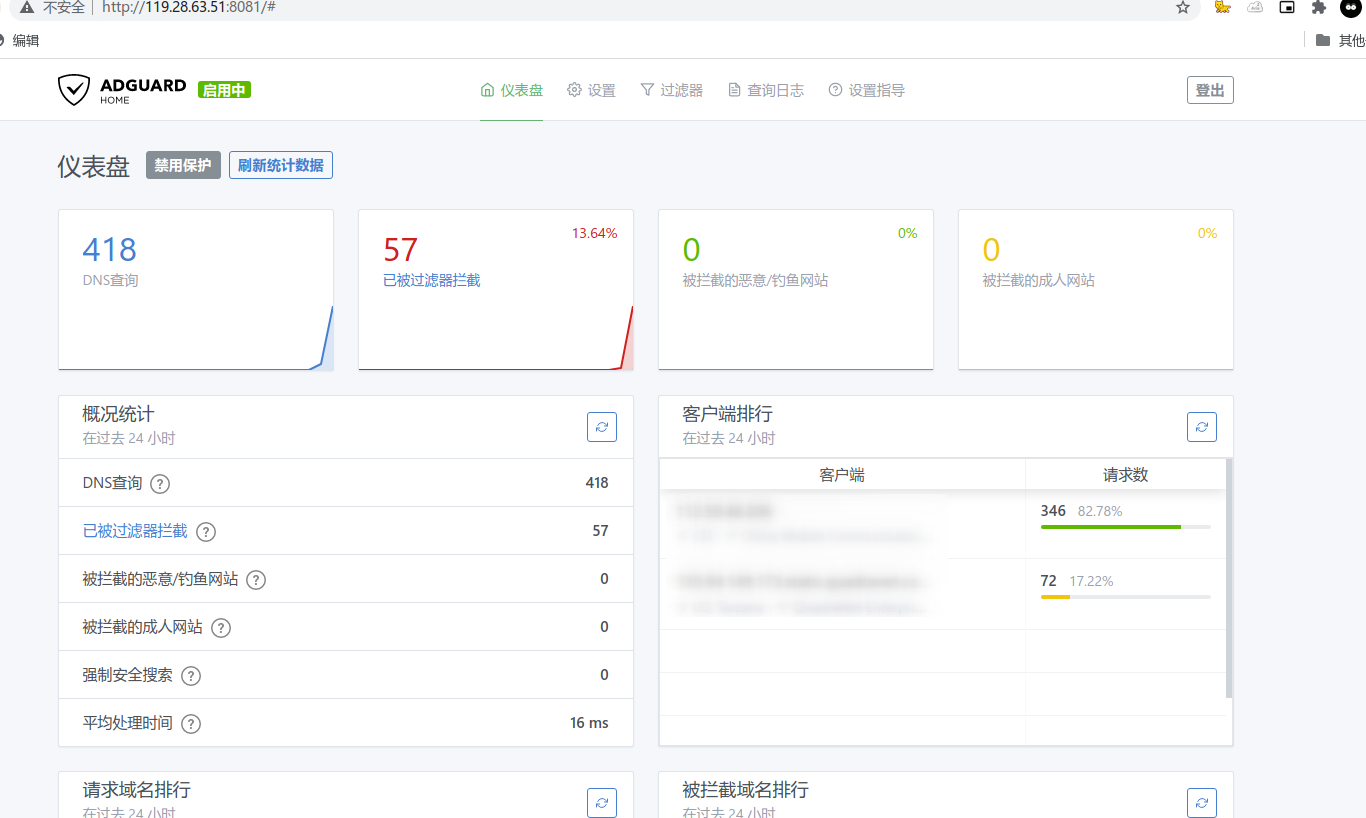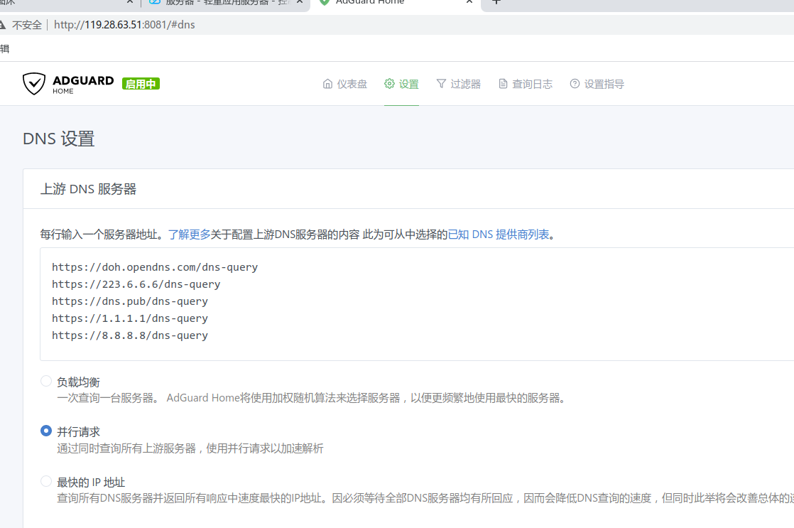 然后搭建了adguardhome,国内的服务器搭建应该还是有一点问题的,HK的应该是没什么关系了。