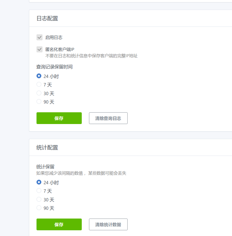 日志和统计只保留24小时,也启用了匿名化客户端ip。