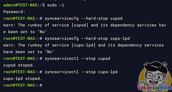 - synoservicectl —stop cups–lpd