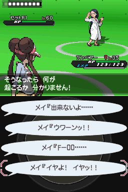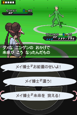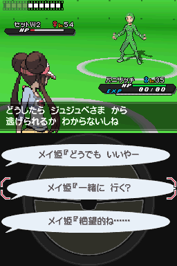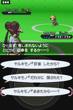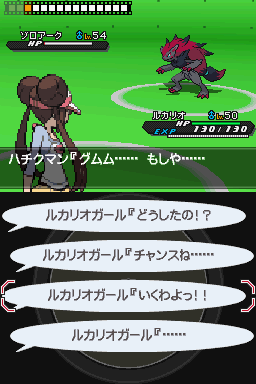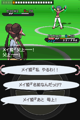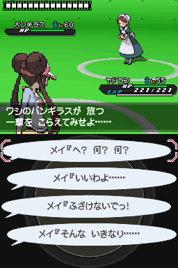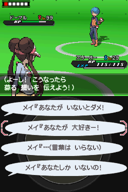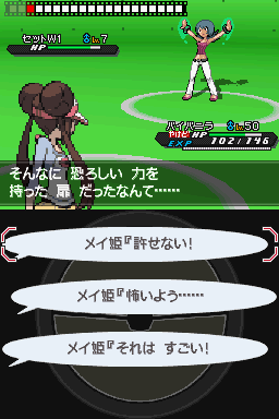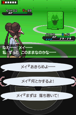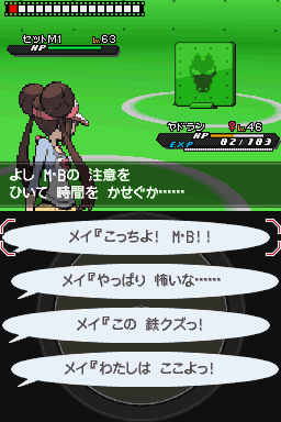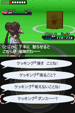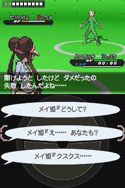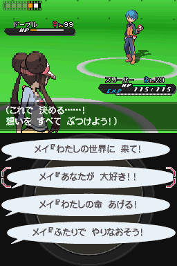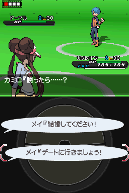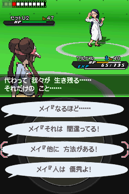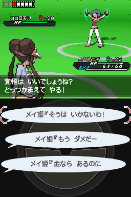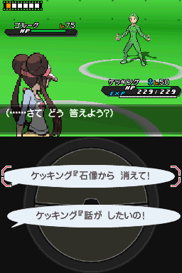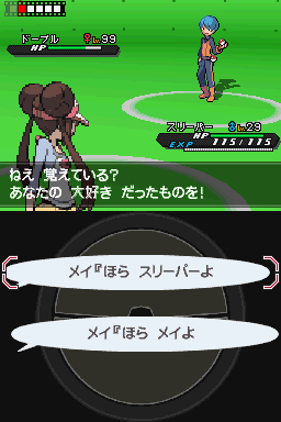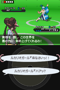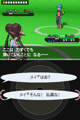 攻略:对方是特性坚硬的蓝格斗,这次可以采取主动进攻的策略,第一回合剑舞一次,之后台词出现,选择