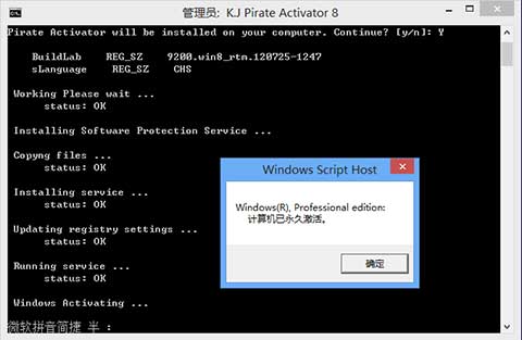 Step 3 – Microsoft Windows 8 Activator 开始激活Windows 8,当你看到计算机已永久激活,确定后自动重启电脑即完成Windows 8 激活。
