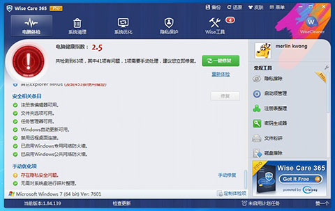 综合型的系统优化工具也不少,比如Wise Care 365 Pro 就是其中一个,其实也就是Wise系列软件产品的整合版,整合Wise Registry Cleaner,Wise Disk Cleaner,Wise Data Recovery,Wise Folder Hider和Wise JetSearch等工具,其中小部分需要下载安装。Wise旗下的大部分软件都是免费软件,除了Wise Care 365 Pro,不过网上可以下载到该软件的注册机。