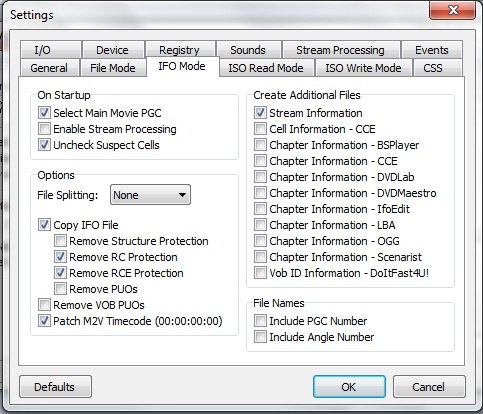 在“IFO Mode”中“File Splitting”要设置成“None”←很重要!!!