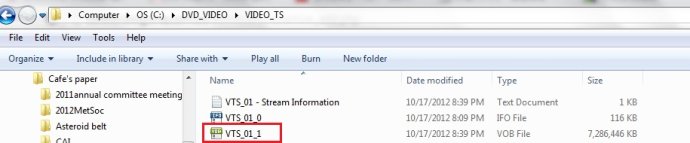 之后进入你设置的路径文件夹,VOB文件“VTS_01_1”就是我们想要的无损视频,可以重命名或者移动到新的文件夹,不用管另外两个文件。