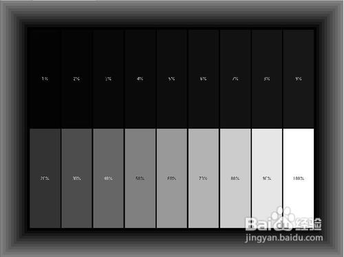 - 灰度:测试显示器的灰度还愿能力,看到的颜色过渡越平滑越好。