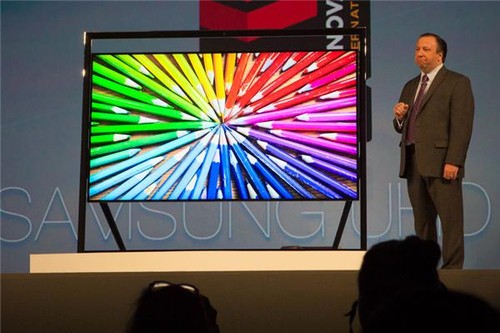 三星公司面对4K超清分辨率技术一直显得很淡定,即便高达75英寸的UA75ES9000智能电视也将分辨率停留在1080p水准,本届CES2013展会,三星终于还是坐不住了,首款4K超清分辨率电视隆重登场。
