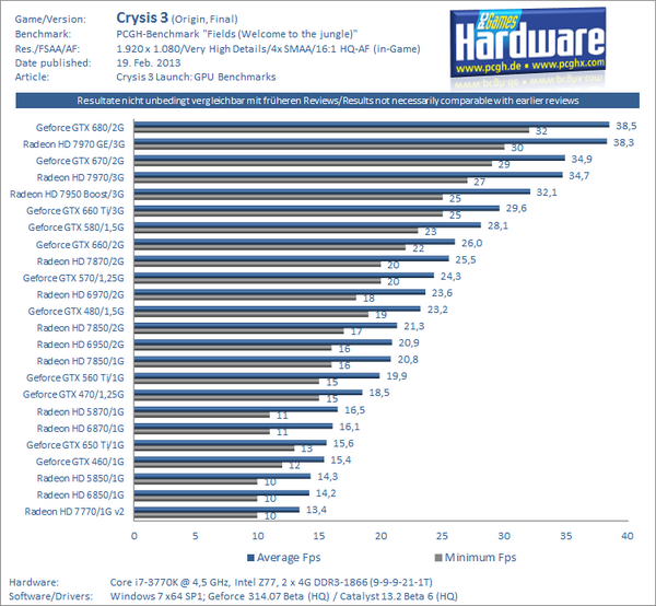 《孤岛危机3》(Crysis3)已经正式发布了,不知道有多少玩家已经玩上了,考虑到游戏的定价以及对配置的要求,估计会阻挡多数人一尝都市丛林的杀戮快感。至于性能测试,之前GameGPU针对beta测试中的多人模式做了测试,结果是一片哀鸿,高端显卡成绩也惨不忍睹,这一次来看看PCGH针对最终版的《孤岛危机3》所做的测试。