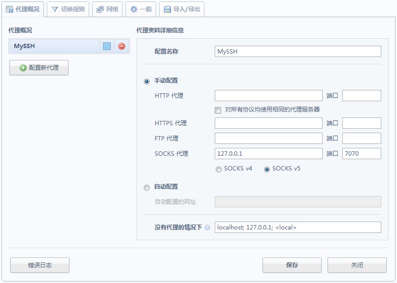 - 使用MyEnTunnel连接ssh服务器并转化为本地socks5代理运行