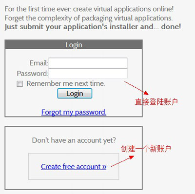 Step 1 –登陆Cameyo在线制作绿色软件网站:http://online.cameyo.com,拥有账号的朋友可以直接登录,如果不,则需要新创建一个账户;