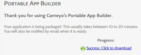 Step 3 –在线生成绿色版软件需要一定的时间,请耐心等待。当完成时,会提供下载链接。