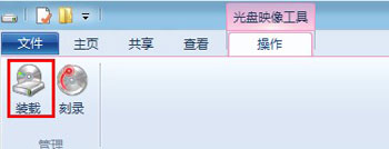 第二种:选中ISO镜像文件后,在ribbon界面的“光盘镜像工具”-“操作”,你也可以找到装载选项;