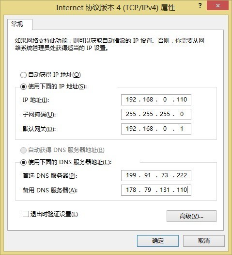选择手动输入IP地址,IP地址和你刚才记录的IP地址一致;