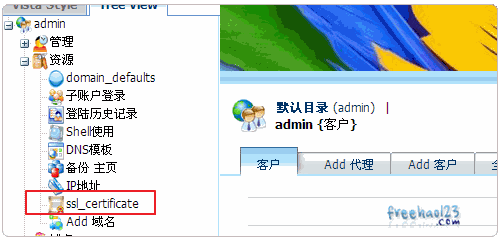 8、到此我们已经获得了CRT证书、Key密钥、CA根证书三项文件了,进入Kloxo,在“资源”中选择“SSL证书”。