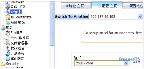 8、再回到IP地址中,选择“SSL配置主页”,为你的Kloxo面板添加SSL证书,当然前提是你已经将该域名绑定在Kloxo上了。