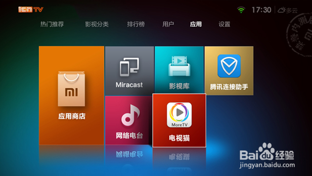 第四步:断开小米盒子与电脑的连接,将小米盒子与电视进行连接。第五步:启动小米盒子,进入“应用”界面。