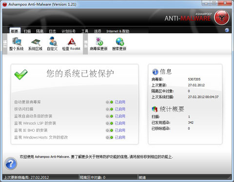 Step 1 –官方下载Ashampoo Anti-Malware安装并更新病毒库;