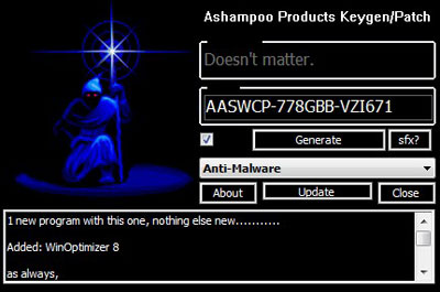 Step 2 – 下载Ashampoo软件系列注册机,以系统管理员身份运行(注:注册机一般会被杀毒软件视为病毒),选择要激活的产品为Ashampoo Anti-Malware;