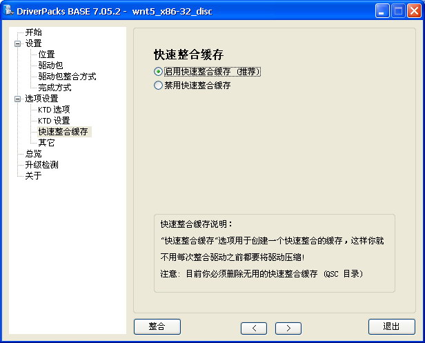 8. 在“选项设置-快速整合缓存”里选中第一项。