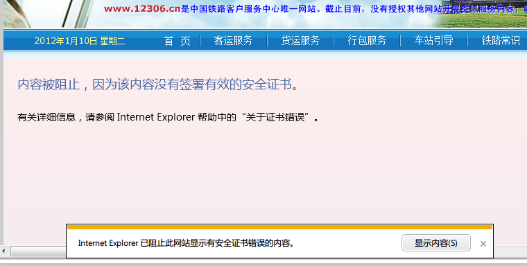 12306网站买票,会出现证书过期或者是不可靠等提示,这里原因是什么?