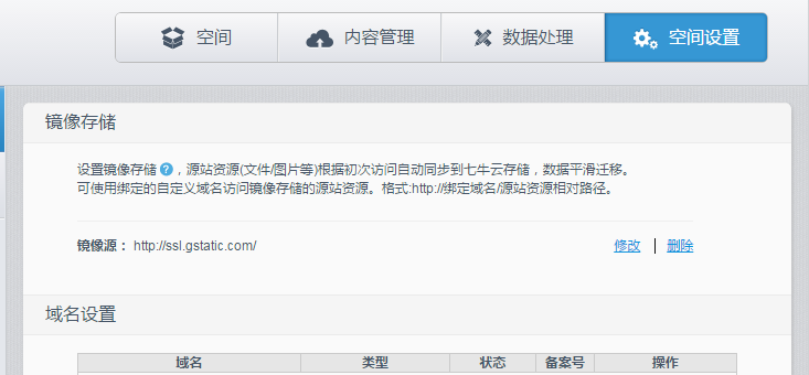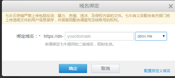设置镜像站点默认七牛给的域名不支持https,绑定一个他们分配的: