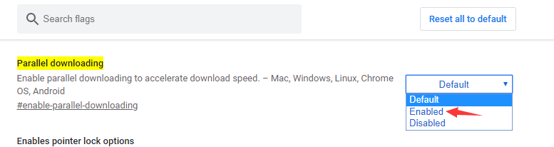 2. 找到 Parallel downloading(CTRL+F搜索),点击Enabled即可开启!