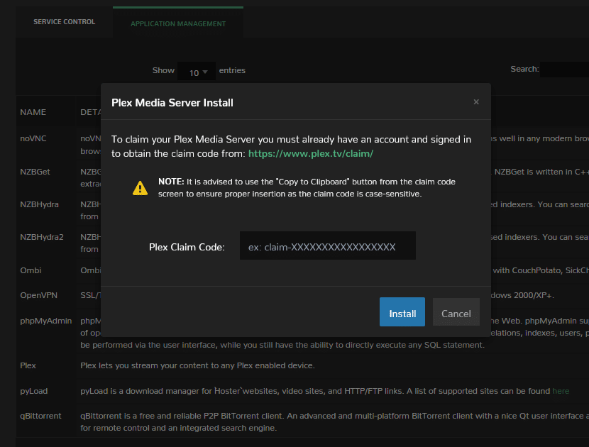 You can now grab your Plex claim code, insert it in the modal within the GUI, or in CLI and boom, your Plex server is now magically claimed on the initial install.