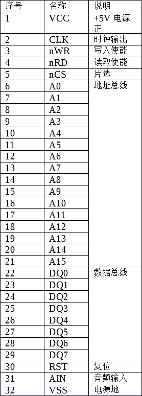 上网搜索一下不难找到Game Boy的卡带接口的引脚定义,如下表所示: