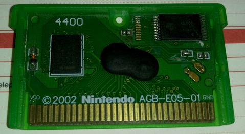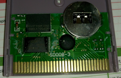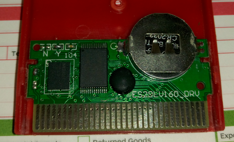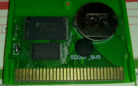 | GBC | ES29LV160_DRV family | Nickel plated | Coin cell (remove to reflash) | 32 kB | 4 MB | BV5 (special handling) | 3.3V IC can be damaged at 5V; Update: move Y→N bridge, remove battery, then flash |