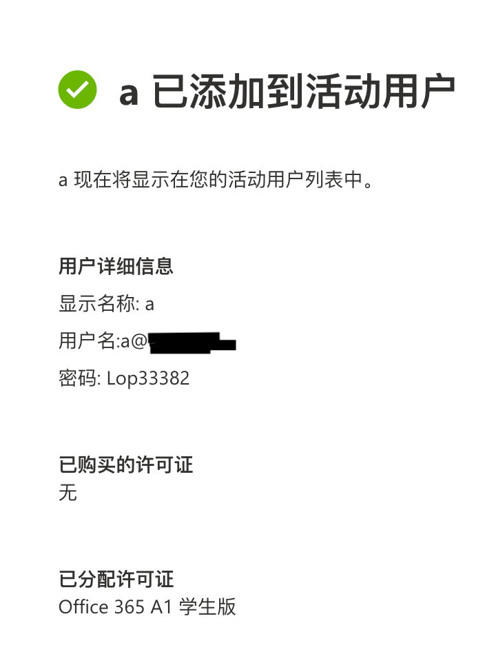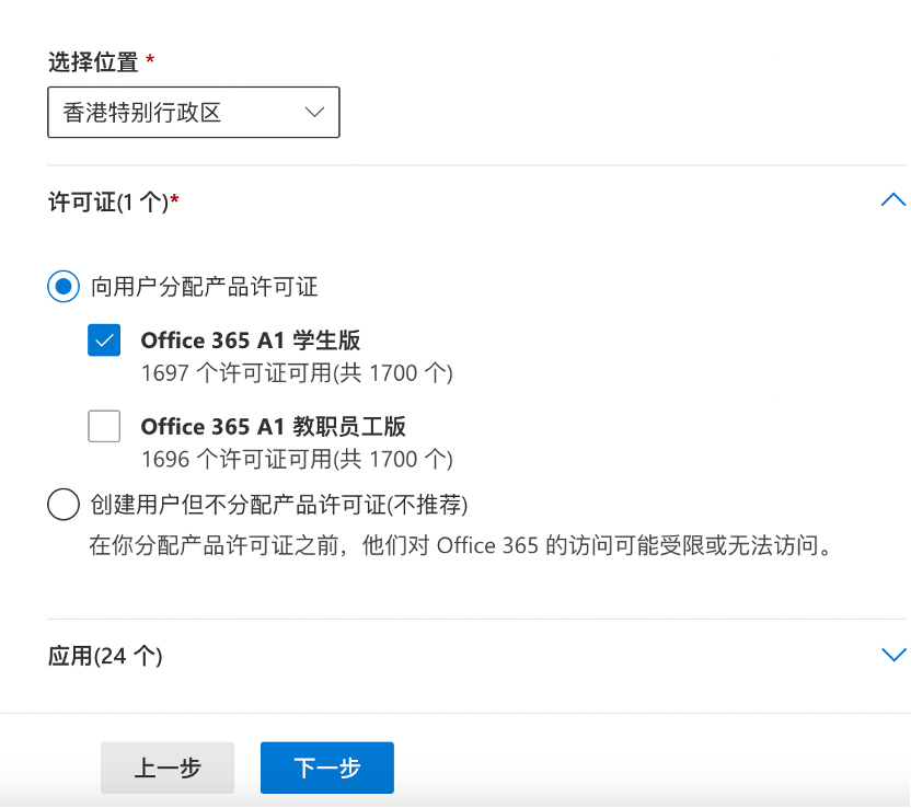 为此用户分配一个许可证,点击下一步直到创建成功