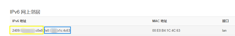 在经过多次观察,会发现路由对设备分配的IPV6后缀基本是固定的,当路由器重新拨号后,运营商分配的ipv6前缀会和wan ip一样发生变化,但后缀部分并不会变(此处不绝对,有些设备每次都不一样,此方法不适用)